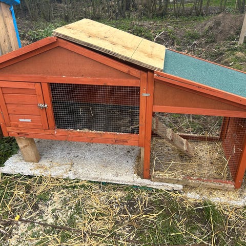 Stor dobbeltetages bur med skuffe til udtag ved rengøring. Hul og trappe til underetagen Resterende net til underetagen medfølger. Fliser til bund kan medfølge.