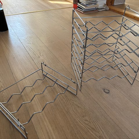 Bacchus vinreol krom til 5 flasker.Måler 48*35*12. Har 5 stk. 100 kr pr stk. Alle 5 stk 450 kr