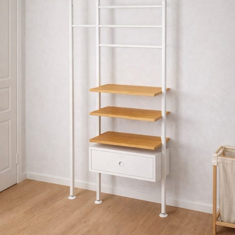 Opbevaringssystem til entreen sælges samlet eller enkeltvis. Der er hylder, skohylder og trådkurve.