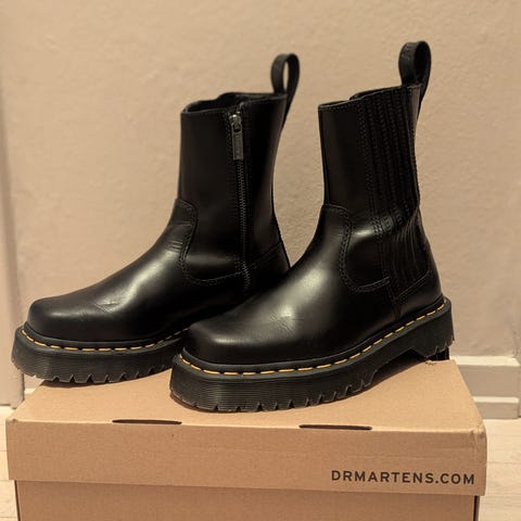 Jeg har købt den en størrelse for stor og skyndt mig at sætte hælbeskytter på, inden jeg opdagede det. Ses på foto.