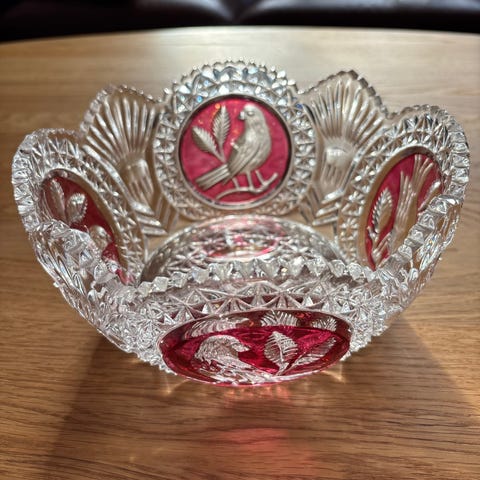 Materiale: Bøhmisk krystalglas med røde indlæg.