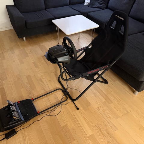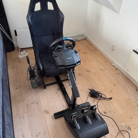 Jeg sælger her min G29 sim racing sæt med playseat. I sætter medfølger som sagt et G29 rat med pedaler, samt tilhørende playseat challenge. Sædet kan justeres som man ønsker og kan også samles igen som vist på sidste billede. Har været brugt minimalt.