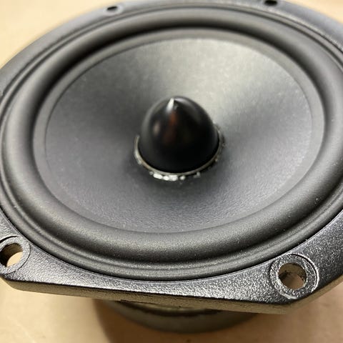 A pair of homemade speakers with discontinued Seas coaxial T17 re coax/tvf coaxial drivers