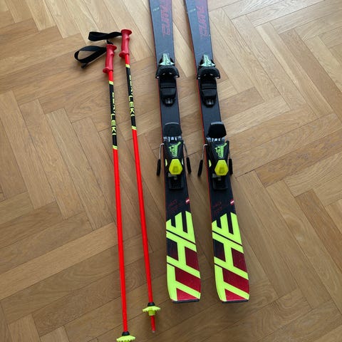Næsten nye (2025) Fischer kvalitets børneski i længde 130cm. Fischer The Curve Jr. med Fischer FS4 bindinger.