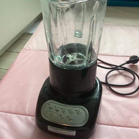 KitchenAid blender med glasbeholder i sort. Blenderen har en kraftig motorenhed med betjeningspanel på fronten, inklusive flere forudindstillede programmer og pulse-funktion. Beholderen er i klart glas med håndtag og låg med påfyldningsåbning. Egnet til tilberedning af smoothies, supper, saucer og knusning af is i husholdningen.