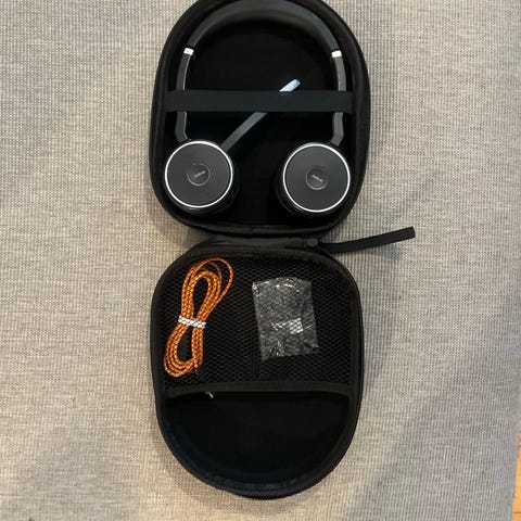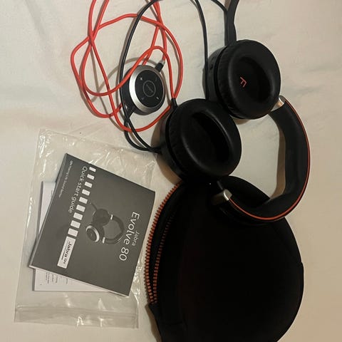 Jabra Evolve 80 headset i flot stand med USB kontrolenhed og case