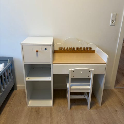 Jollyroom børneskrivebord med stol hvid træ