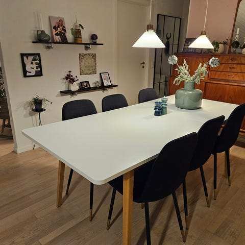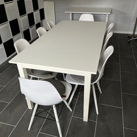 Spisebordssæt med 6 stole plus 2 tillægsplader 40 cm