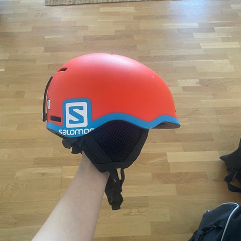 Salomon skihjelm i orange farve. Brugt 5 dage. Børnehjem størrelse small. Ca 7-10 årig. Hjelmen har flere ventilationsåbninger på toppen og siderne samt justerbar hagerem med kliklås. Indersiden er polstret for øget komfort. Velegnet til skiløb og andre vintersportsaktiviteter, hvor der er behov for hovedbeskyttelse.