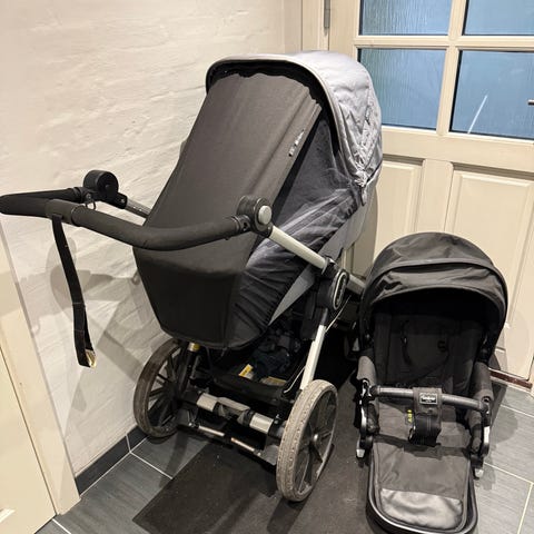 Barnevogn med langt liggemål incl. Klapvognssæde.