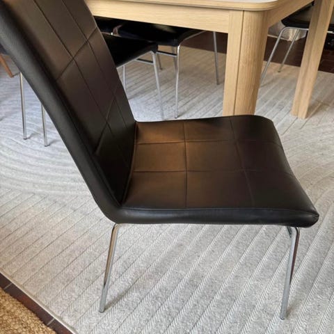 6 stk. stole i sort formstøbt plast med egetræsben. Stolene fremstår pæne uden huller/slid på sædet. Ingen pletter, ridser eller hakker. Sælges kun samlet.
