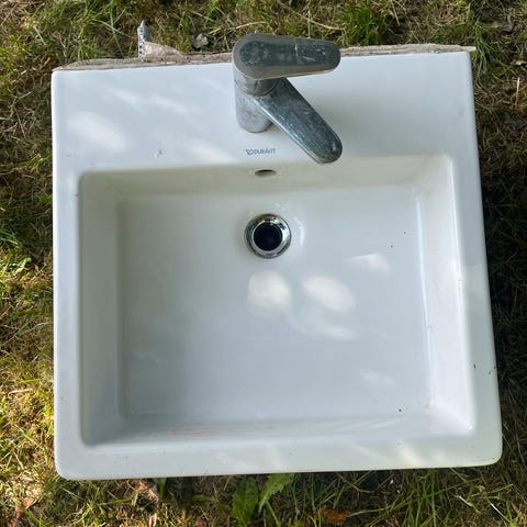 Duravithåndvask i hvid porcelæn med bredde på 55 cm og dybde på 46 cm. Rektangulær kumme med afløb i midten og hul til armatur. Velegnet til montering på badeværelse, fx på væg afhængigt af beslag og installation. Nummeret 2385 55 er præget på bagsiden af vasken som model- og størrelsesangivelse.