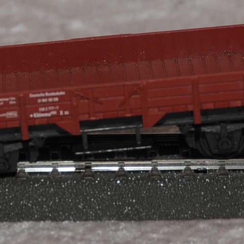 Vognen er bugt, men fremstår næsten som ny. Tidligere ejer har limet granitstikke fast i ladet. Der er monteret Märklin bøjlekoblinger.