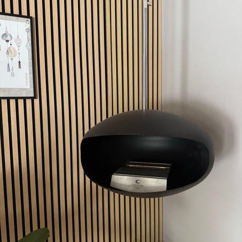 Det er en ethanol-kamin med flad bagvæg, som kan stå helt ind til væggen. Den ligner en traditionel brændeovn, men kræver hverken skorsten eller udsugning. En rigtig nem løsning hvis man ønsker hygge og flammer uden installation 🔥