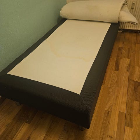 Vi har brugt den som sofa og gæsteseng. Der har ikke været tis/skjolder eller lign på. Man sover okay på den - vil dog anbefale en topmadras hvis den skal bruges til permanent seng. Fjedrene buler ikke ud eller er ødelagte men man godt mærke dem under overfladen.