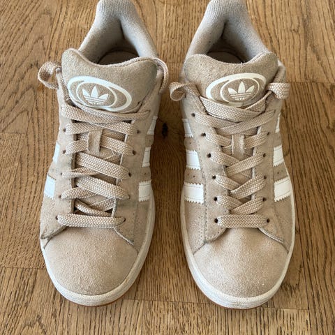 Adidas Spezial sneakers i blå ruskind med hvide striber. Skoene har brun gummisål og blå snørebånd. Indersålen er mønstret med Adidas-logo. Størrelse 44 2/3. Velegnet som hverdagssko eller fritidssko.