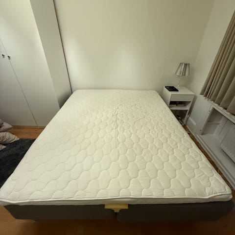 Det er en kvalitetsseng, som samlet set er brugt i et års tid. Jeg er usikker på den præcise leverandør, men modellen hedder Lyngdal. Sælges udelukkende da jeg skal have en anden størrelse seng i forbindelse med flytning.