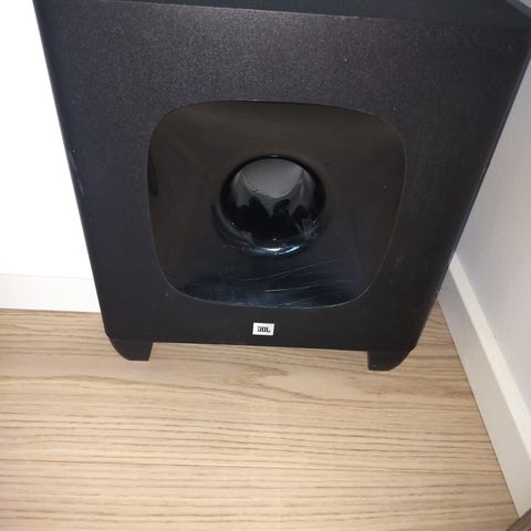 JBL soundbar all in one 2,0 med trådløs subwoofer i sort. Soundbaren har flere tilslutningsmuligheder på bagsiden, herunder HDMI-indgange, optisk indgang og strømtilslutning. På toppen af soundbaren er der betjeningsknapper, og der medfølger en fjernbetjening til styring af lyd og funktioner. Systemet er egnet til brug sammen med tv og andre lydkilder i stuen for forbedret tv- og filmlyd.