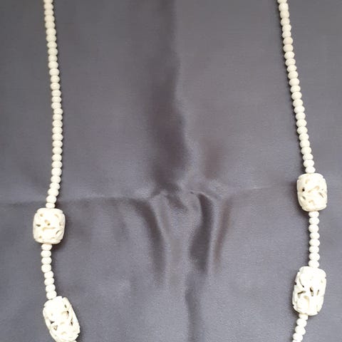 Halskæde, andet materiale, ben, Orientalsk Halskæde, ben,med skæringer mm, monteret med metal, længde ca 68 cm, vurdering 2000,- kom med et bud