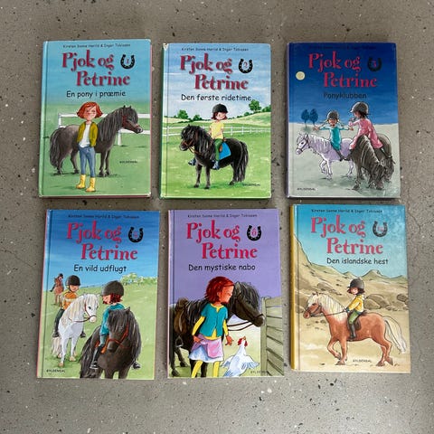 Gyldendal Pjok og Petrine Den islandske hest børnebog i hardback. Bogen er en del af serien om Pjok og Petrine og er målrettet børn fra cirka 4 til 9 år. Historien handler om Petrine, der får et fantastisk fødselsdagsønske opfyldt med en islænderhest, og om deres oplevelser sammen. Bagsiden viser flere titler i samme serie. Velegnet som højtlæsning eller selvlæsning for børn i indskolingsalderen.