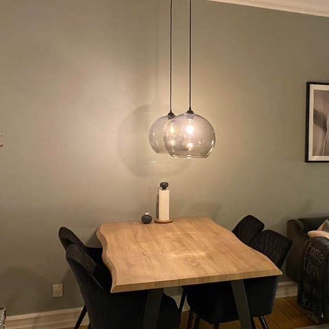 2 stk. fra IKEA. Ingen synlige brugsspor. Dæmpbare pærer medfølger. Let røgfarvet glas. Gir et behageligt let lys.
