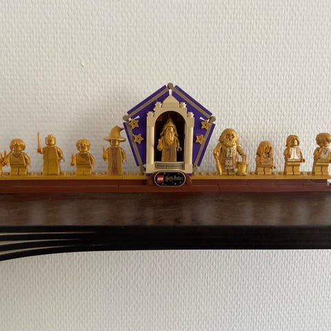 Jeg sælger den komplette samling af de ni gyldne minifigures, der fulgte med en række Harry Potter sæt i 2021-22. Samlingen består af : Rubeus Hagrid, Severus Snape, Quirinus Quirrell, Albus Dumbledore, Ron Weasley, Harry Potter, Minerva McGonagall, Hermione Granger og Lord Voldemort.