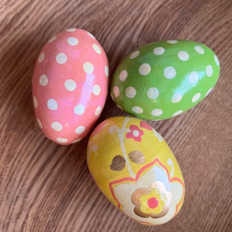 Påskeæg i træ, hånd-dekoreret i fine farver og mønstre