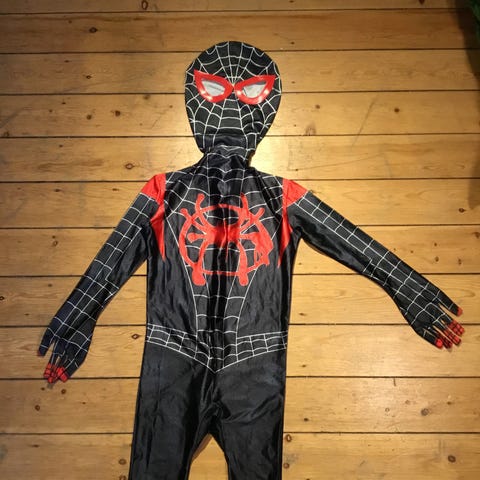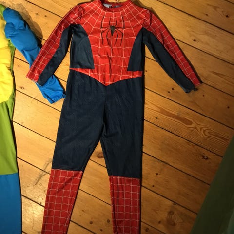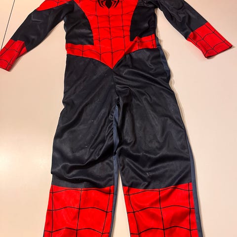 Spiderman kostume heldragt til unisex. Dragten er i klassisk rød og blå farvekombination med edderkoppemotiv på brystet og printet mønster, der efterligner superhelteoutfittet. Egnet som udklædning til fastelavn, temafester eller leg derhjemme.