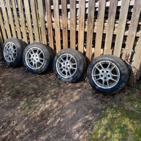 Fire velholdte sommerdæk med fælge. Brugt, men næsten nye. Har siddet på en Opel Safira.