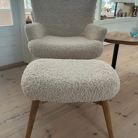 Nypris: lænestol 1899 kr og puff 500 kr.