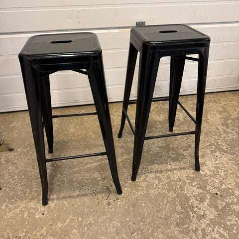 2 stk stole i stål Chrome. Kan drejes og drejes op og ned i højden - er brugt som barstole ved kogeø.