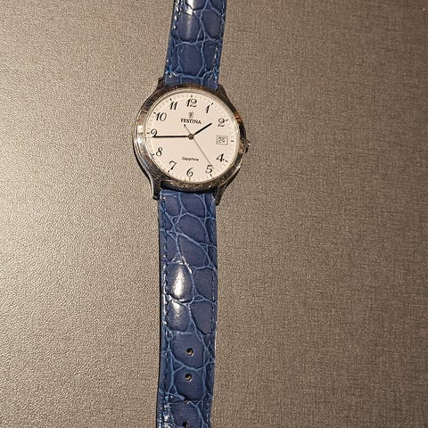 Festina alarm chronograph, 12 jewels, dato, water resistant 100M, skrulåg, Stainless steel, virker som det skal holder på tiden, diameter 42mm. Passer til håndled 18,5cm. Urlænke Bredde 22mm. Glasset som man kan se på billeder, sender via postnord eller hente