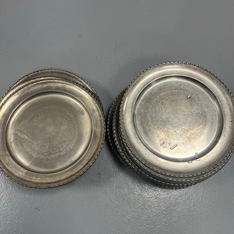 Dansk Forsølvnings Anstalt kande- og fad-sæt i forsølvet metal. Sættet består af to kander og et fad med tilhørende skål. Den ene kande er mærket med kapacitet 80 cl. Delene er stemplet med producentens mærker, herunder “Dansk Forsølvnings Anstalt” og kapacitetsangivelse. Velegnet som bordservice eller dekoration i hjemmet.