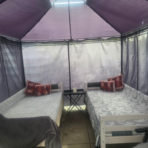 Gavl og næsten ny topmadras sælges også.