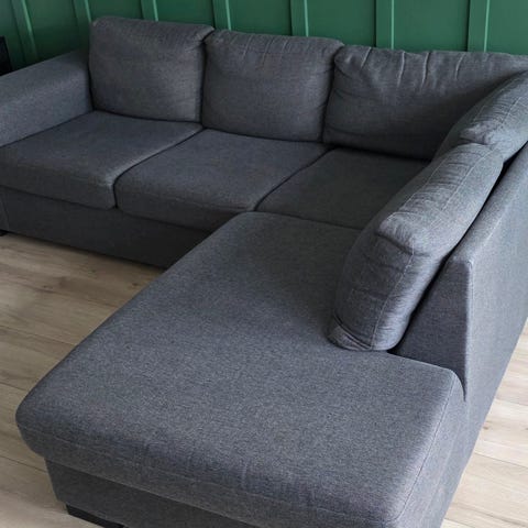 Kan deles i to dele (chaiselong-delen og resten), når den skal transporteres, og både sidde-puder og ryg-puder kan tages af.