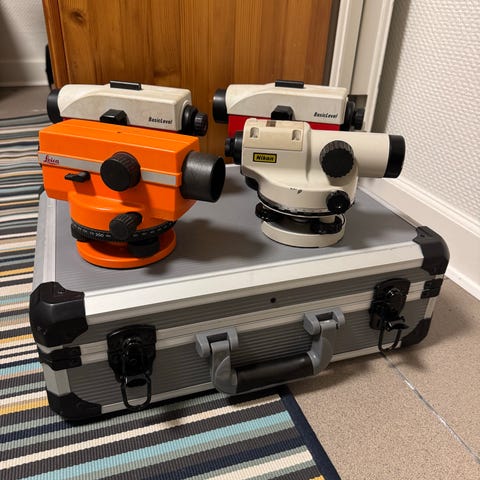 Nivellering optisk instrument i etui messing og metal