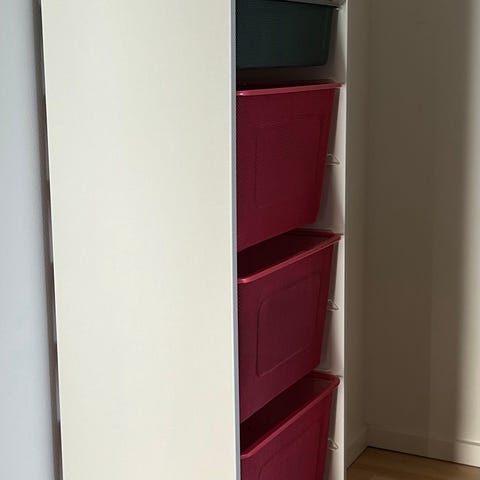 IKEA reol, opbevaringsreol, kurvereol, fletkurve, JYSK kurve, smal reol, entréreol, opbevaring, høj reol, sommerhus møbler