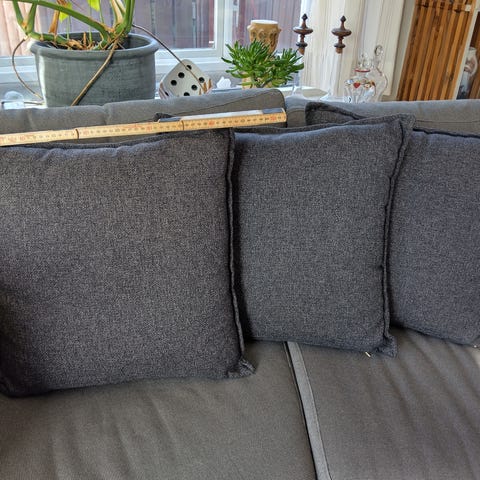 Ilva pyntepuder i forskellige farver. Puderne ses på billedet i ensfarvede og mønstrede varianter, blandt andet gul, turkis, lilla, lysegrøn og med blomstermønster. Egnede til brug i sofa, lænestol eller som dekoration i soveværelse og opholdsrum. Størrelserne fremstår som kvadratiske standardpuder. Materiale og præcise mål fremgår ikke.