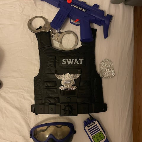 Militær dragt brugt til fastelavn. Str. 164.