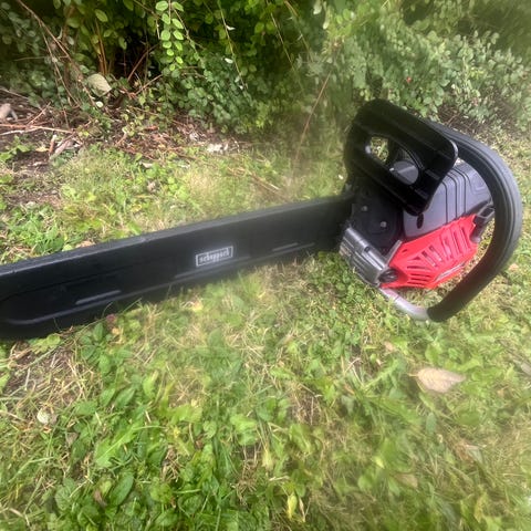 Scheppach CSH46 motorsav i sort/rød. Benzindrevet kædesav med 46 cm sværdlængde. Effekt på 1,8 kW / 2,45 hk og slagvolumen på 45,8 cm³. Maks. kædehastighed 21 m/s
