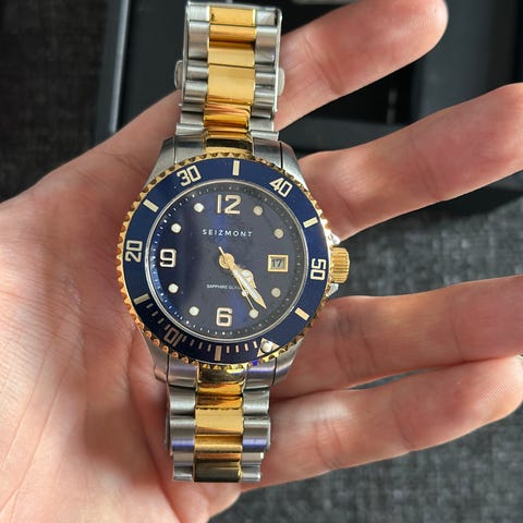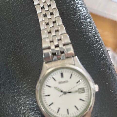 Seiko unisex armbåndsur i guldfarvet metal med sort urskive. Uret har analoge visere samt dag- og datovisning kl. 6-position. Urkassen er rund med integreret lænke i metal og foldelås med Seiko-logo. Bagkassen er i stål med skruelåg. Velegnet som unisex ur til daglig brug.