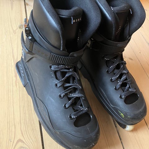 Intuition Liners. Agressuve Skate rulleskøjte liners i sort til rulleskøjter. Inderstøvlerne er i størrelse 45 (ca. US 11–11,5 / 29–29,5 cm) og er beregnet til montering i rulleskøjteskaller. Modellen har snørelukning, ventilationshuller og forstærket hæl- og tåområde. Egnet som udskiftningsliners eller opgradering af eksisterende rulleskøjter.