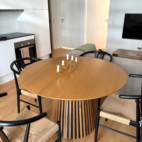 Designet til 4 personer, men på en hyggelig aften kan du godt klemme 8 personer ind til pizza.