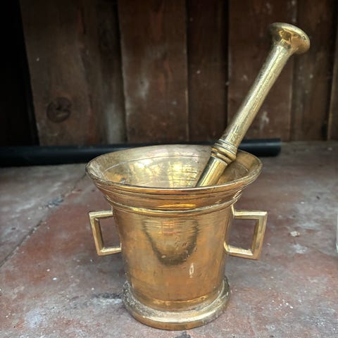Ukendt morter og støder messing guldfarvet