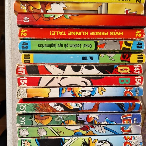 Bogpakke med blandede børnebøger og Anders And Jumbo-bøger.