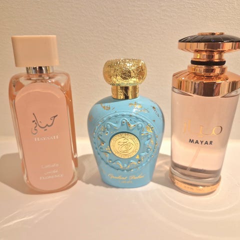 Samples af diverse parfumer. Bl.a. Lattafa, Afnan 9PM, Lacoste og Maison Alhambra