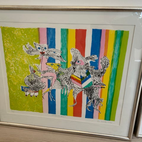 Trykket er monteret i passepartout og indrammet i lys ramme med glas. Sælges sammen med Artisterne af samme kunstner for 5.000kr for begge litografier - eller enkeltvis for 2.750kr.