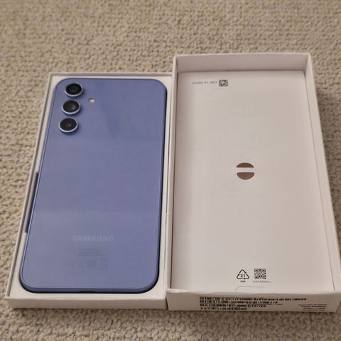 Samsung Galaxy A54smartphone med 128 GB intern hukommelse.brugt af min far.