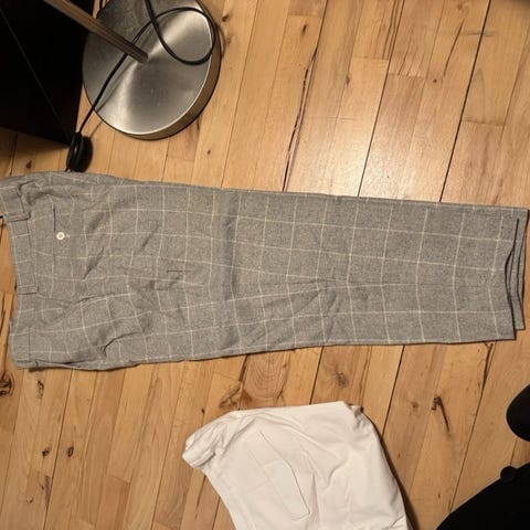Plisserede flannel/uldbukser fra det britiske mærke Olive i deres Volk-snit.