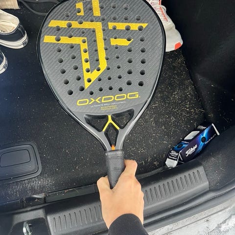 Oxdog Ultimate Pro padelbat i sort med pink detaljer. Battet har dråbeformet hoved med perforeret slagflade og hvidt greb med håndledsrem. Egnet til padelspillere, der ønsker en batmodel med kombination af kontrol og kraft. Velegnet til brug på både indendørs og udendørs padelbaner.